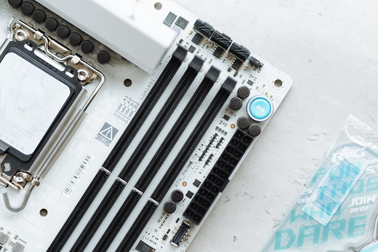 ROG STRIX Z890-A Gaming WIFI S吹雪则是把频率更向前提升了一步,在支持最高192GB DDR5的同时,双条频率最高可以支持到8800MT/s,比英特尔推荐的8000MT/s还高一些。