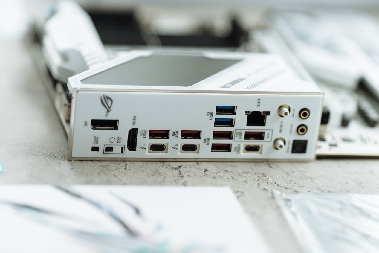 在后置面板上,ROG STRIX Z890-A Gaming WIFI S吹雪提供了1个DdisplaPort,1个HDMI,4个10Gbps USB-A接口,2个雷电4接口,1个USB-C 10Gbps且支持USB-PD充电接口,另外还配备2个USB-A 5Gbps接口,1个2.5Gbps网口,快装Wi-Fi 7接口,音频口,以及光纤口。