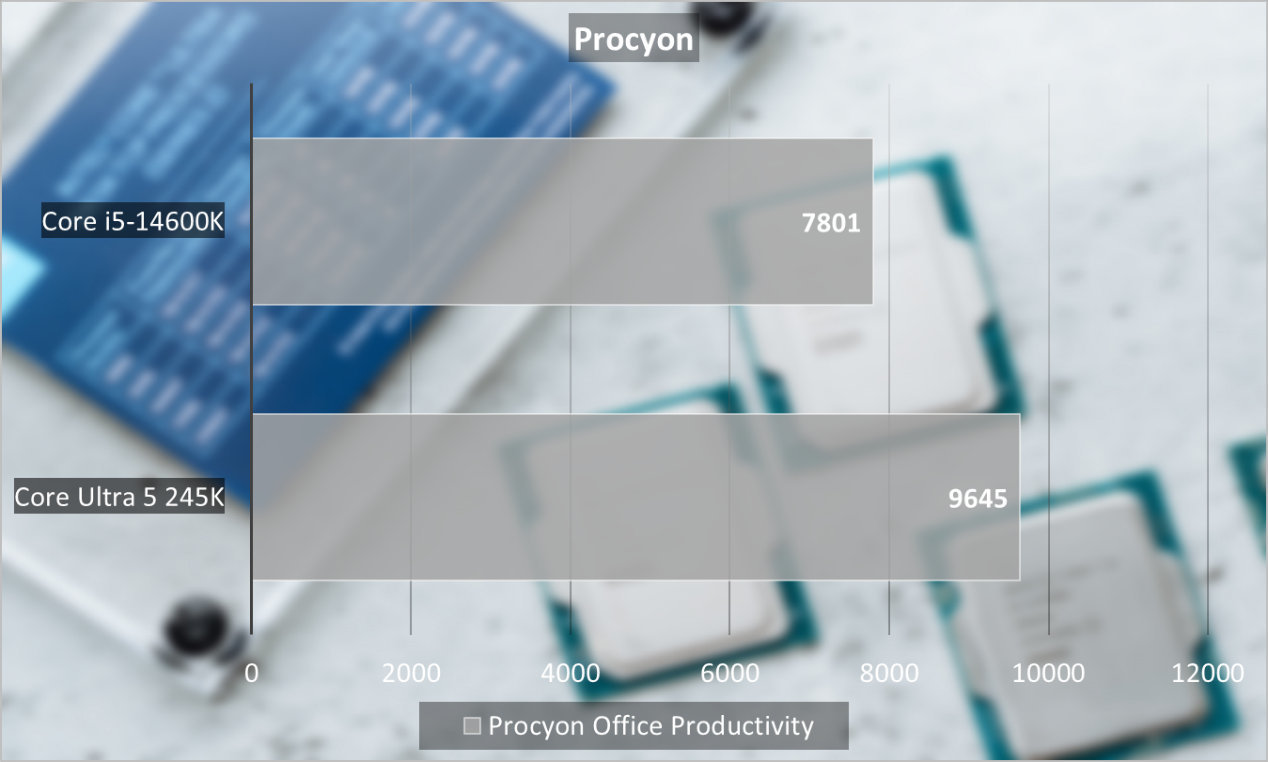 在Procyon Office Productivity中,酷睿Ultra 5 245K相对酷睿i5-14600K提升了23%,可见办公能力在酷睿Ultra 200S也加强了。