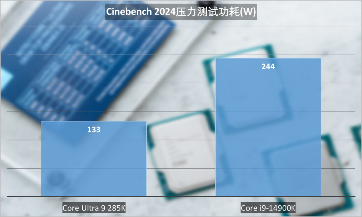 如果用Cinebench 2024作为参考,可以发现如果限制在130W左右时候酷睿Ultra 9 285K性能也仍然可以做到酷睿i9-14900K在250W时候的水平。