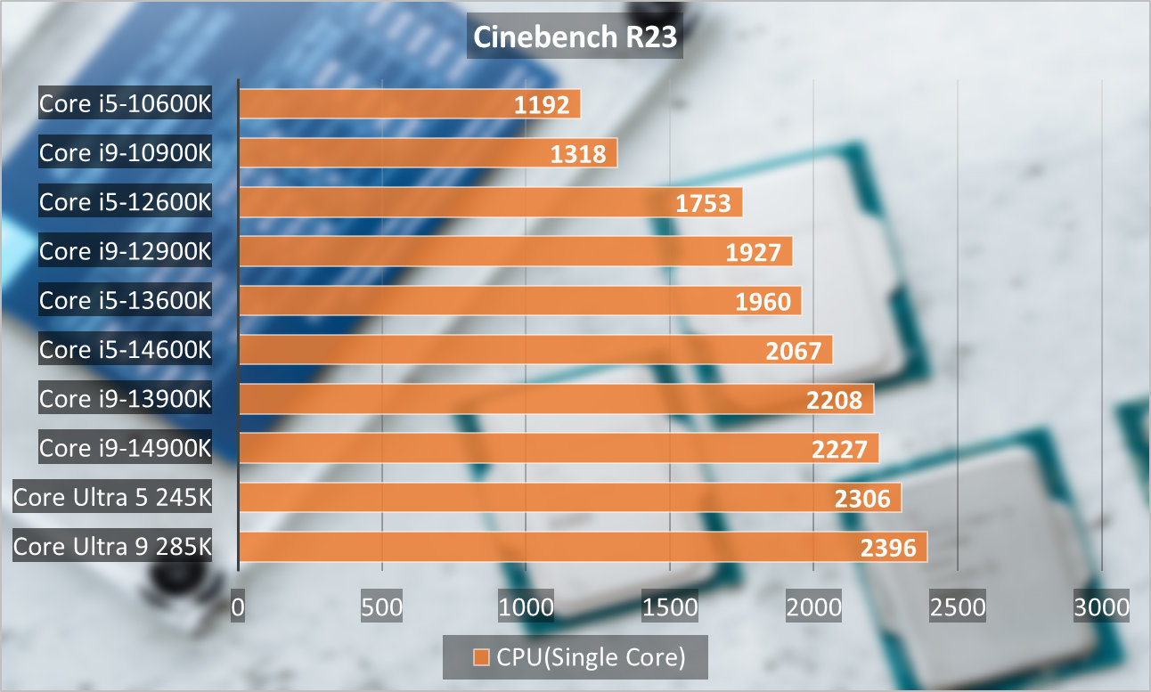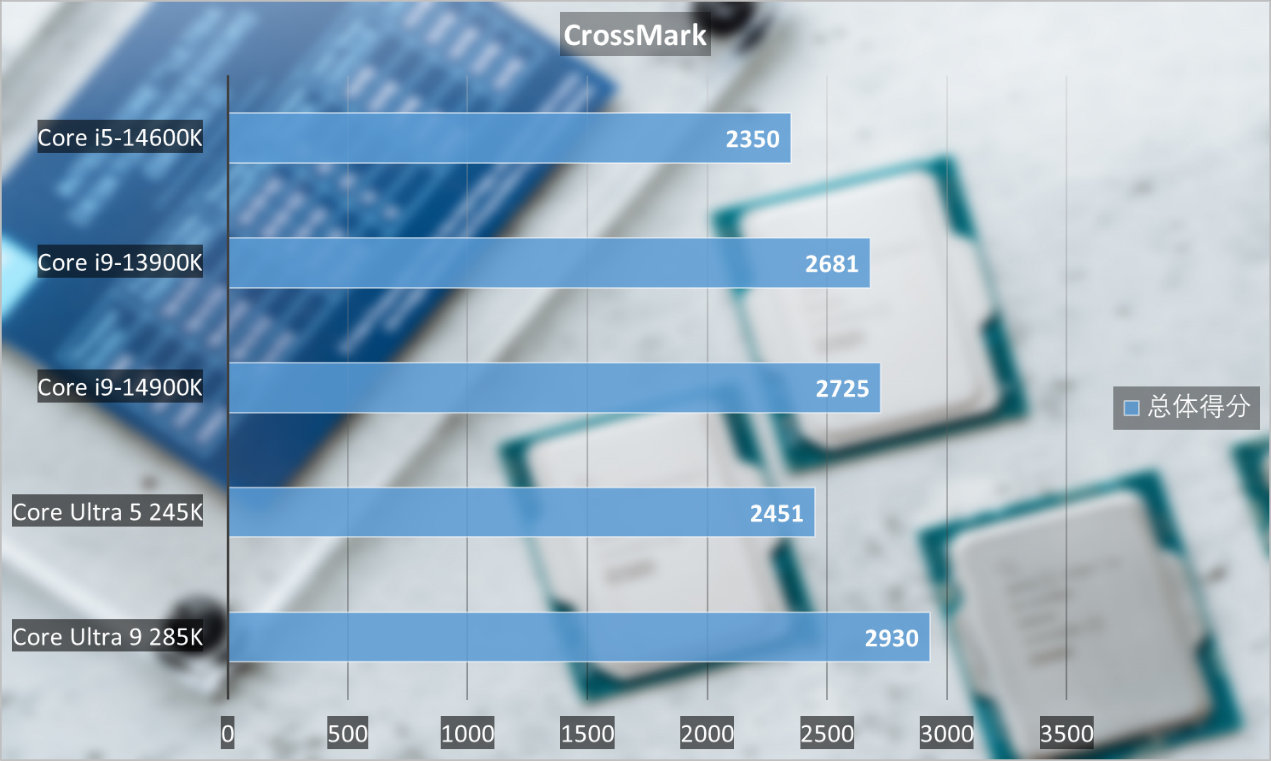 CrossMark侧重于平台上处理器的单线程性能,通过对比可以看到酷睿Ultra 9 285K相对酷睿i9-14900K提升7%,酷睿Ultra 5 245K相对酷睿i5-14600K提升则在4%。