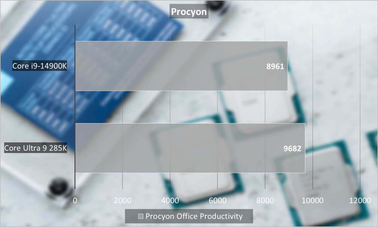 依赖于CPU性能的还有Office办公套件,这里我们使用UL Procyon Office Productivity作为参考基准,同样可以看到IPC的提升让酷睿Ultra 9 285K、酷睿Ultra 5 245K的战斗力提升都非常明显,其中酷睿Ultra 9 285K相对酷睿i9-14900K提升8%,酷睿Ultra 5 245K相对酷睿i5-14600K提升有23%之多。