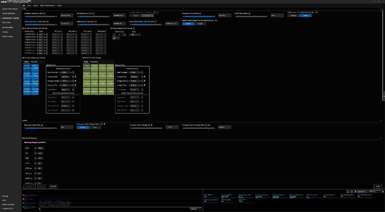 功耗得到很好的控制之后,酷睿Ultra 9 285K的超频也有不错的发挥空间,配合新版本的Intel eXtreme Tuning(XTU),可以做到更多的超频控制,比如双基准时钟(Dual Base Clock , BCLK)可以做到分别控制计算Tile和SoC Tile,以实现不同的超频效果。超频步进最小以16.6MHz进行配置。