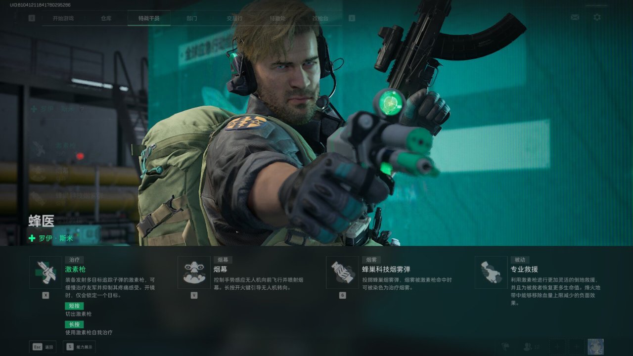 那麼其次,帶個蜂醫,開門和最後跑的時候封個煙,還能補一下奶位,其實煙比較重要,跑路,搶撤離點都很關鍵