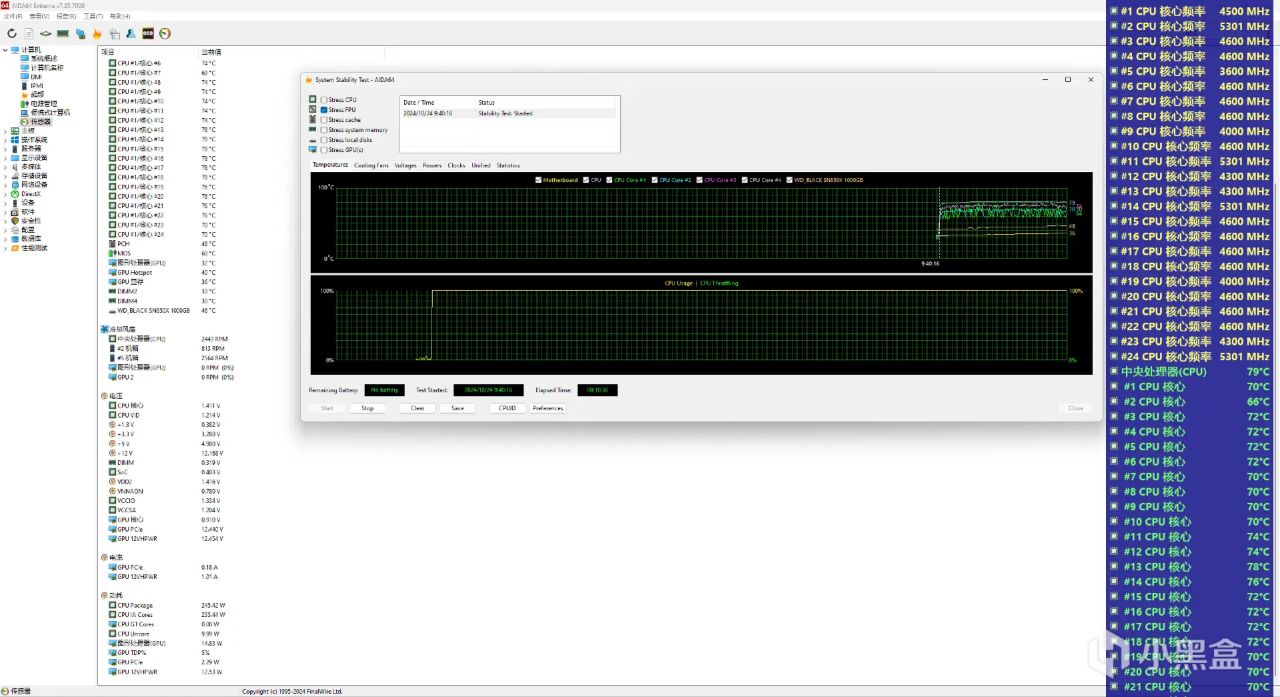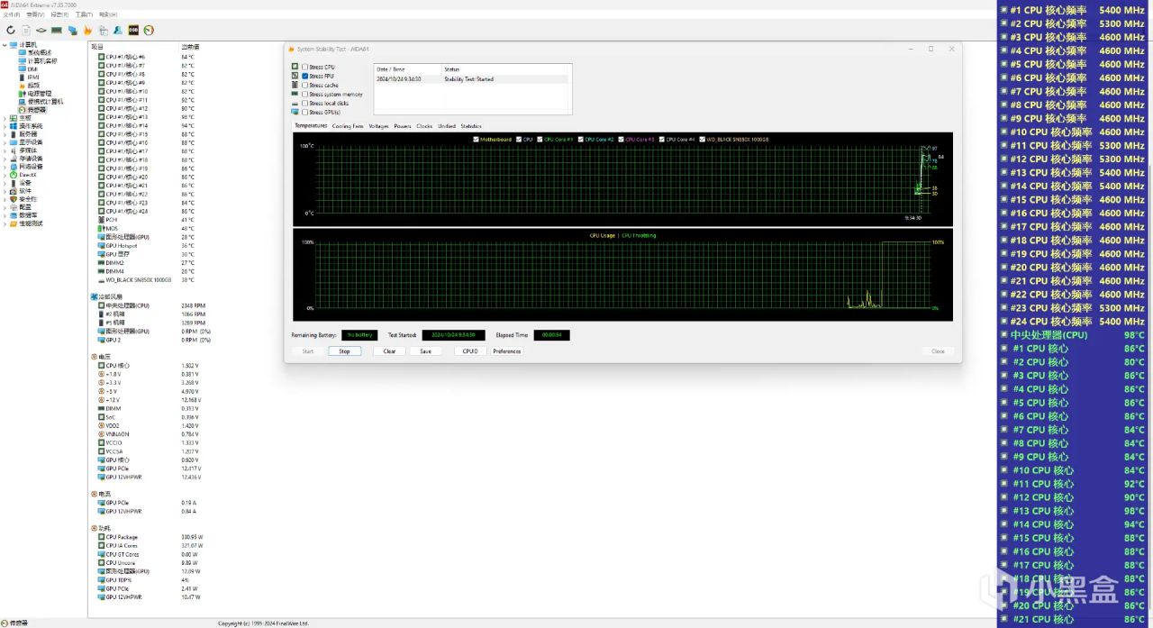 而在MSl Unlimited Settings選項下,Ultra 9 285K的功耗可以達到330W以上,這時候CPU核心的溫度輕輕鬆鬆就達到了100℃。