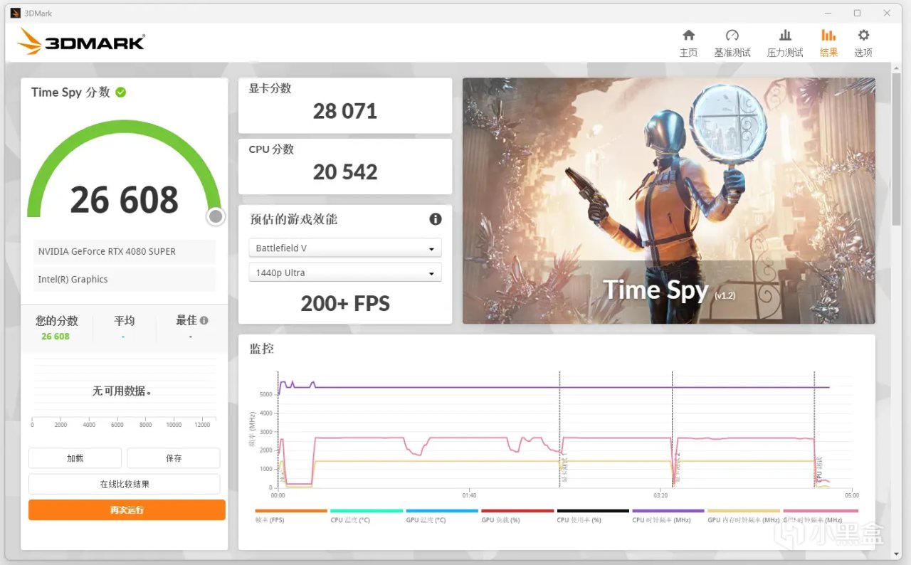 3DMARK Time Spy 分數爲26608,其中CPU分數爲20542