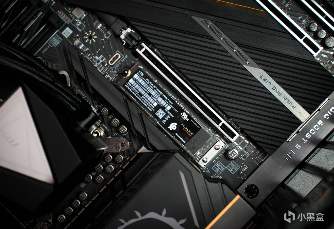 硬盤方面,我使用的M.2固態是西部數據WD_BLACK SN850X NVMe SSD。主要是我目前手上還沒有PCIe 5.0的固態,性能最好的就是這塊PCIe 4.0的SN850X。該固態擁有多個容量版本,不僅有常見的2TB/4TB,甚至還有8TB的版本。1TB版本的官標速度爲7300MB/s順序讀和6300MB/s順序寫。同時,該固態的設計也非常到位,板載DRAM緩存,無論是性能還是兼容性都非常不錯。