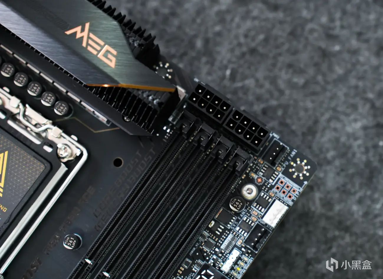 微星MEG Z890 ACE主板的CPU供電方面,主板供電配備了24+1+2+1相供電設計,並且核心供電MOSFET採用了110A DrMOS芯片,同時,設計師還將CPU的雙8pin的供電接口調整在內存條的上方, 就是爲了走線更便利。