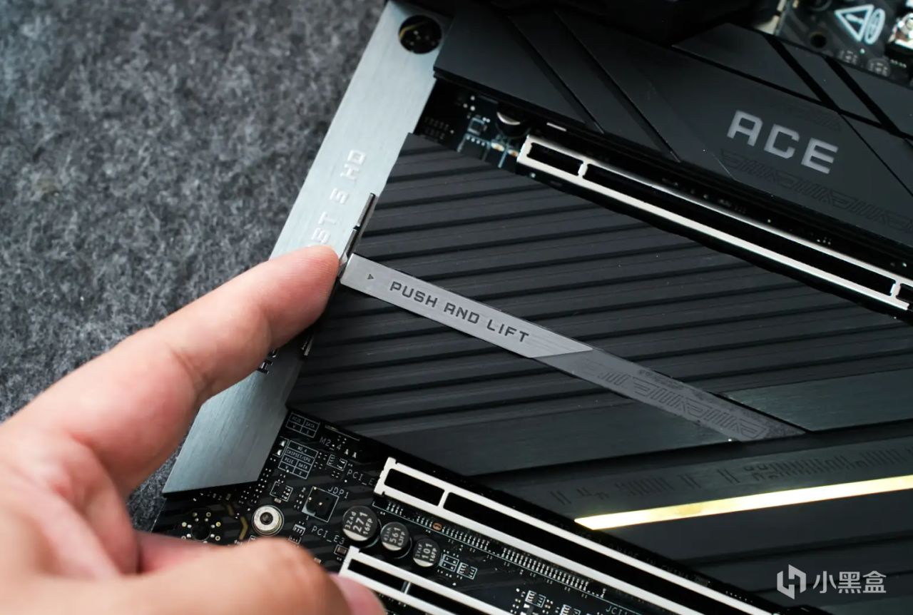 在微星MEG Z890 ACE主板安裝固態非常方便,只需要單手就可以拆下散熱馬甲,然後塞入固態即可,完全不用額外的工具。