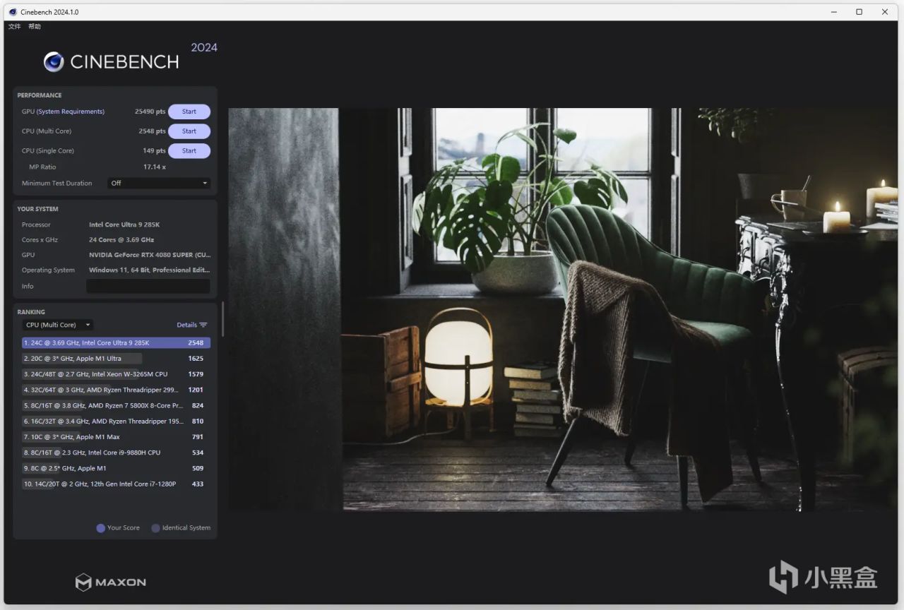 CINEBENCH 2024測試,單核成績爲149pts,多核成績爲2548pts。