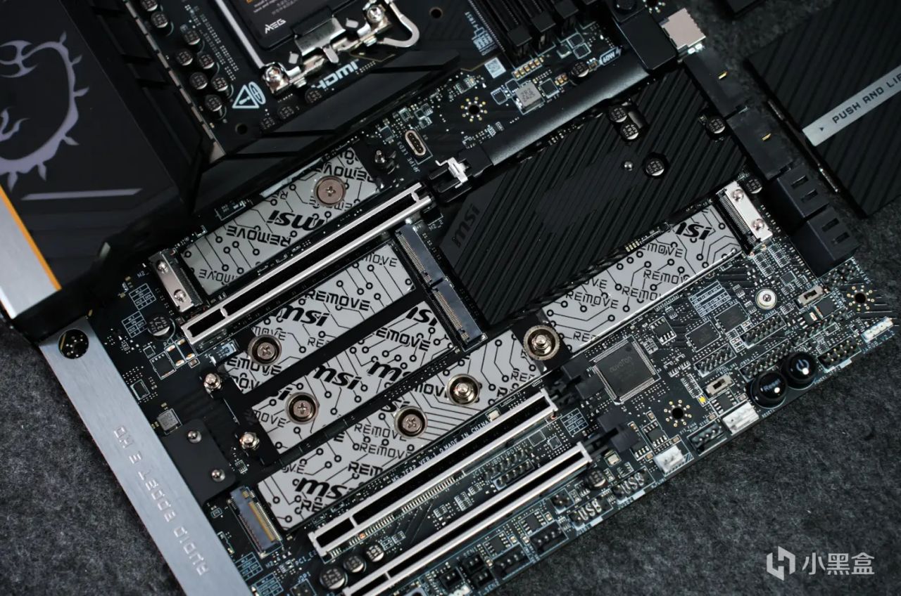 M.2接口的散熱馬甲都是採用微星最新的EZ Magnetic M.2 Shield Frozr II快裝快拆設計,輕輕一按即可拆卸,安裝M.2固態也無需其他工具。