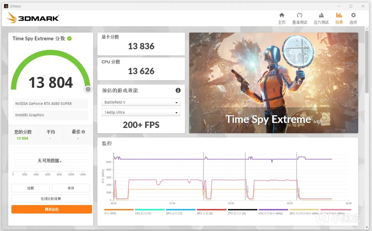 3DMARK Time Spy Extreme 分數爲13804,其中CPU分數爲13626