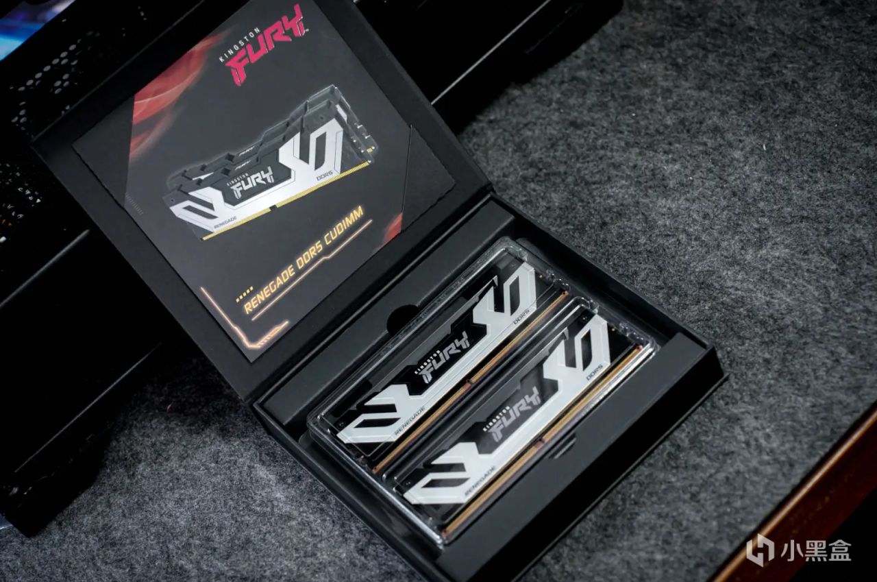 因爲新一代Z890主板支持CUDIMM內存,所以這次使用的內存爲金士頓FURY Renegade叛逆者系列 DDR5 8400MT/S 24GB*2,該內存的外觀設計與之前的FURY Renegade叛逆者系列內存沒有太大的區別,都是採用了鋸齒狀的金屬散熱馬甲,黑白撞色的設計非常醒目。