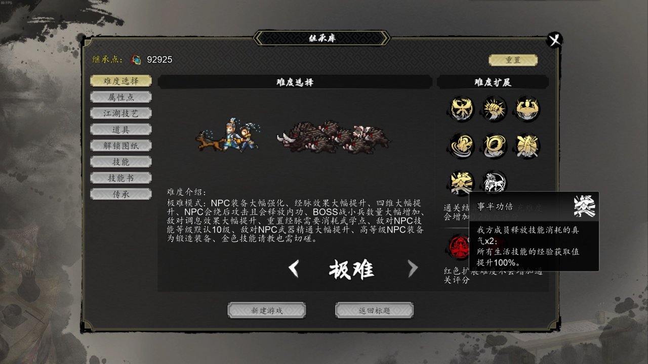 效果:部分敵方高手會在戰鬥開始時獲得一層涅槃效果,死亡時重生一次;生活技能有25%的概率出現雙倍產出。