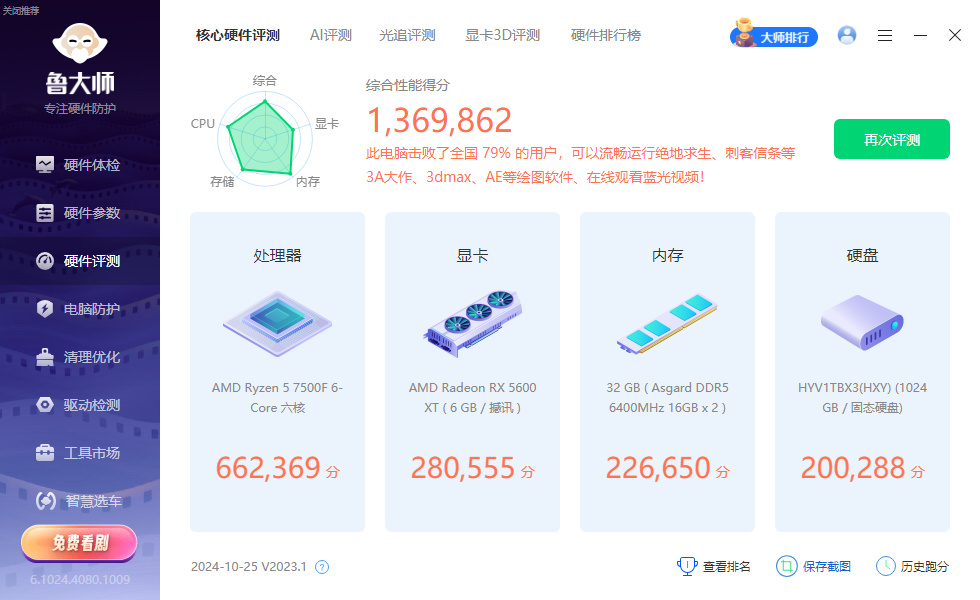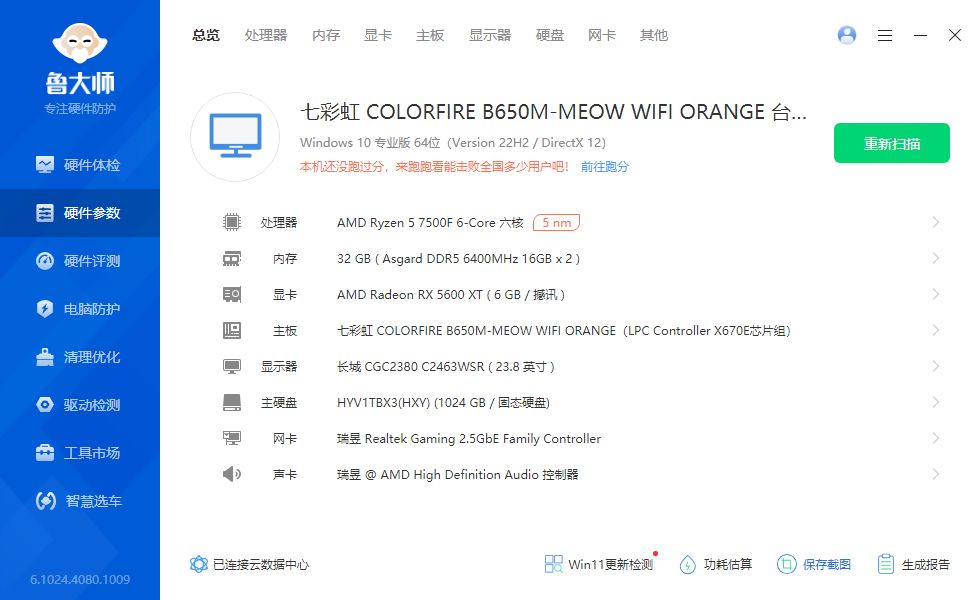 现在在上班摸鱼,跑分等下班后再测一下鲁大师