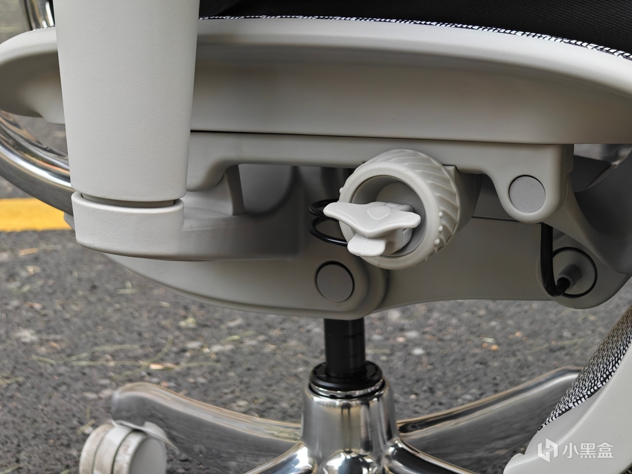 升降前後傾斜都是靠這一個按鈕左右和上下四向操作(我本以爲顯示器增加指點杆設計很文明瞭,沒想到椅子也開始捲了)