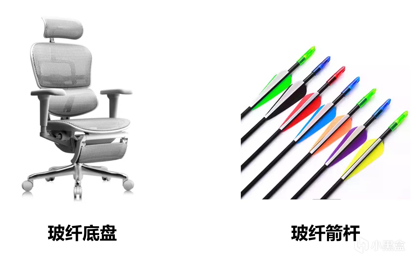 椅子的底盤用的是成本比較高的玻纖底盤,玻纖這種材料在現代複合弓也有使用,操作更省力,而且彎曲阻力是線性的,更符合人體的發力。當然也可以做箭桿。