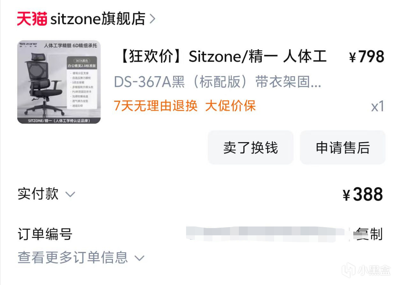 這個椅子在當時還是很不錯的,那時候也沒啥太好的產品合適窮學生。只能選了精一的產品,雙十一388元拿下。