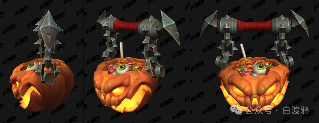 除去往年的常規掉落,今年戰利品南瓜新增了寵物阿爾福斯,只能從紫色南瓜開出來,掉率爲百分之1.2。這隻寵物是唯一的,並且不能裝籠,學習後會解鎖成就【巫妖汪】。