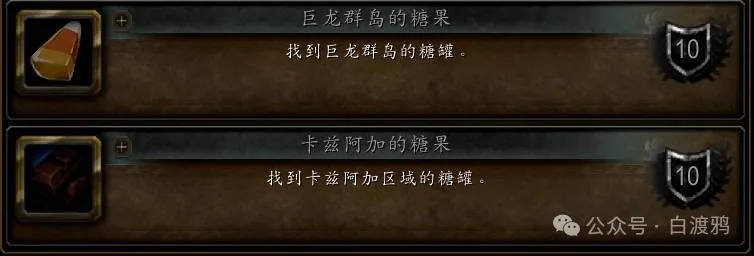 拿糖其實就是重複勞作,沒什麼好講的。但是這個版本,暴雪爲卡茲阿加和巨龍時代也增加了新的糖果,沒有成就的記得去補一下~如果不知道怎麼找糖,下個handynote和萬聖節模塊就好~