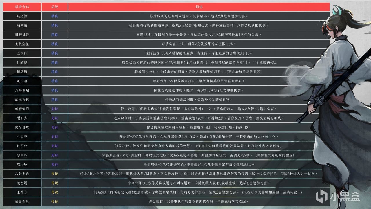 5.傳說奇珍【墨影袈裟】:現在製造墨分身的效果,除了閃避傷害以外,玩家受到傷害時也會觸發,以增加奇珍效果的容錯率;