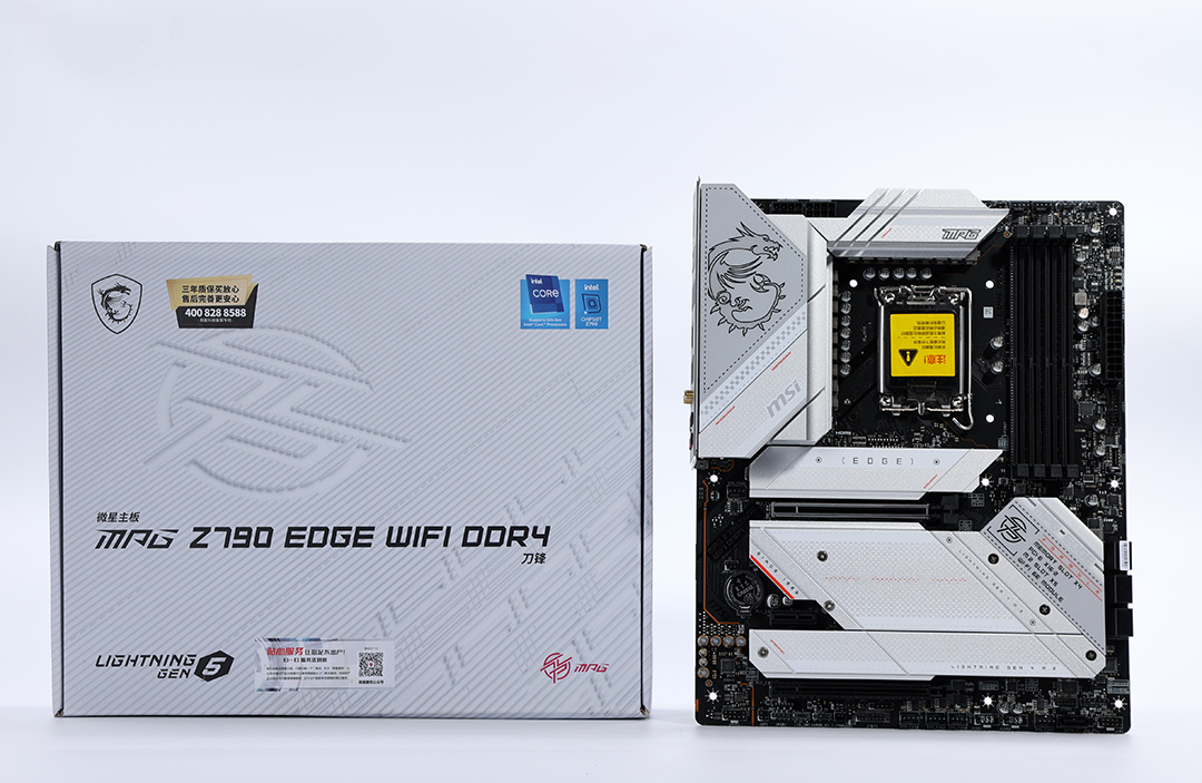 带K的13代酷睿i7, 搭配Z690或者Z790都没啥毛病,新装机的话,当然是首选Z790。再结合今天装机的主题,所以咱选择了一块微星MPG Z790 EDGE WIFI D4主板。虽然没有白色PCB,但是大面积银色金属散热装甲的覆盖,也让这块主板可以更好的契合今天的白色装机主题;