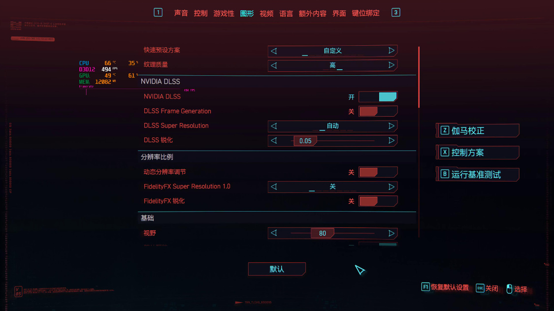 《赛博朋克 2077》基准测试,画质光追均为超级,4K分辨率下,关闭DLSS时,游戏的实际帧率约为30FPS左右。开启超级性能模式下的DLSS 2.0后,游戏实际帧率约为115FPS左右。继续开启DLSS 3.0后,游戏实际帧率约为155FPS左右;
