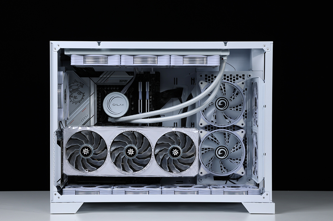 13代酷睿i7其实封装温度控制比上代更优秀,但是咱也不是少那三瓜俩枣的人,所以直接影驰雪影360R一体式水冷安排,纯白的外观也能更好的适配今天装机的风格;