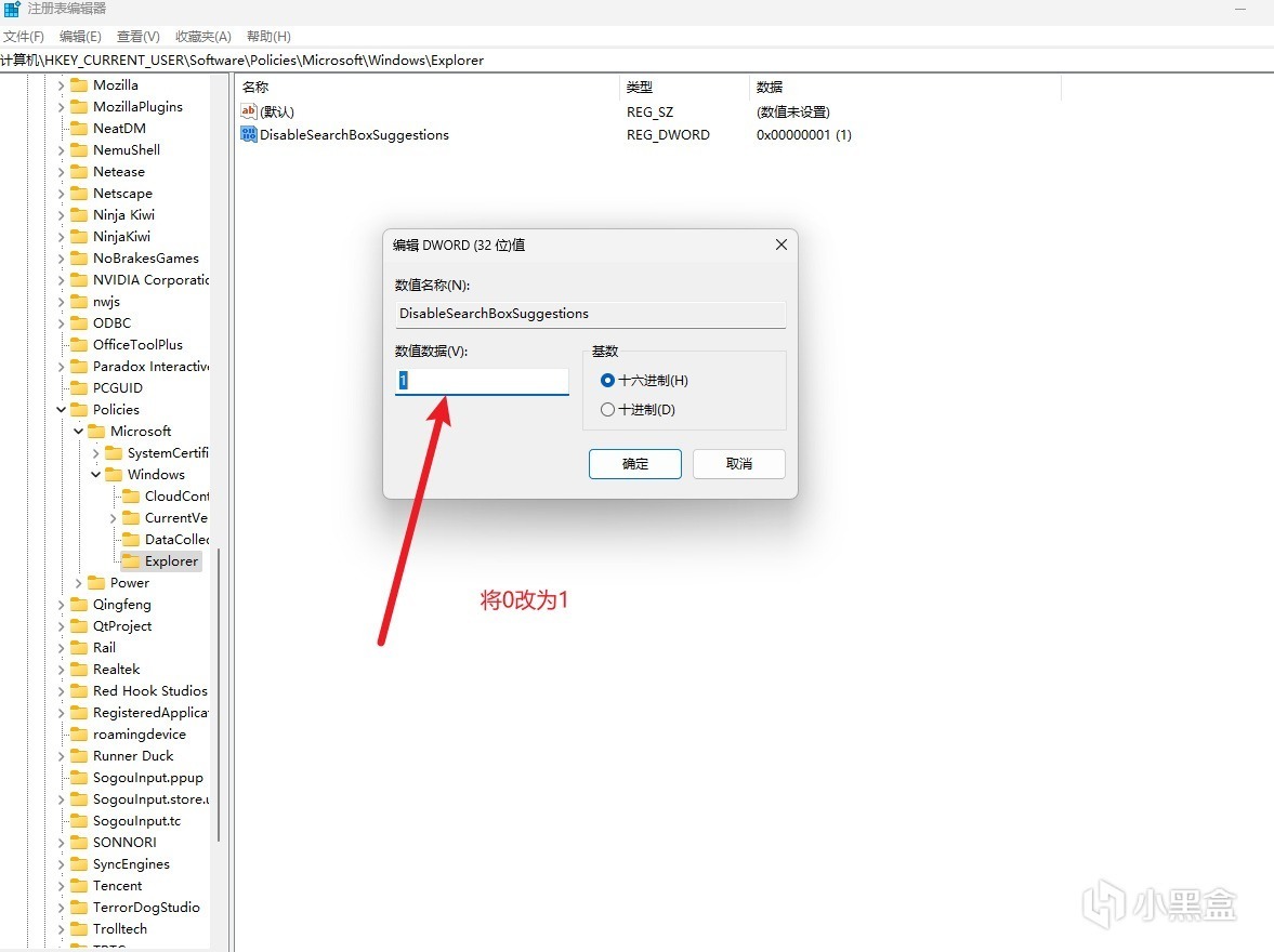 關閉網頁搜索功能:運行(Win+R)-輸入regedit