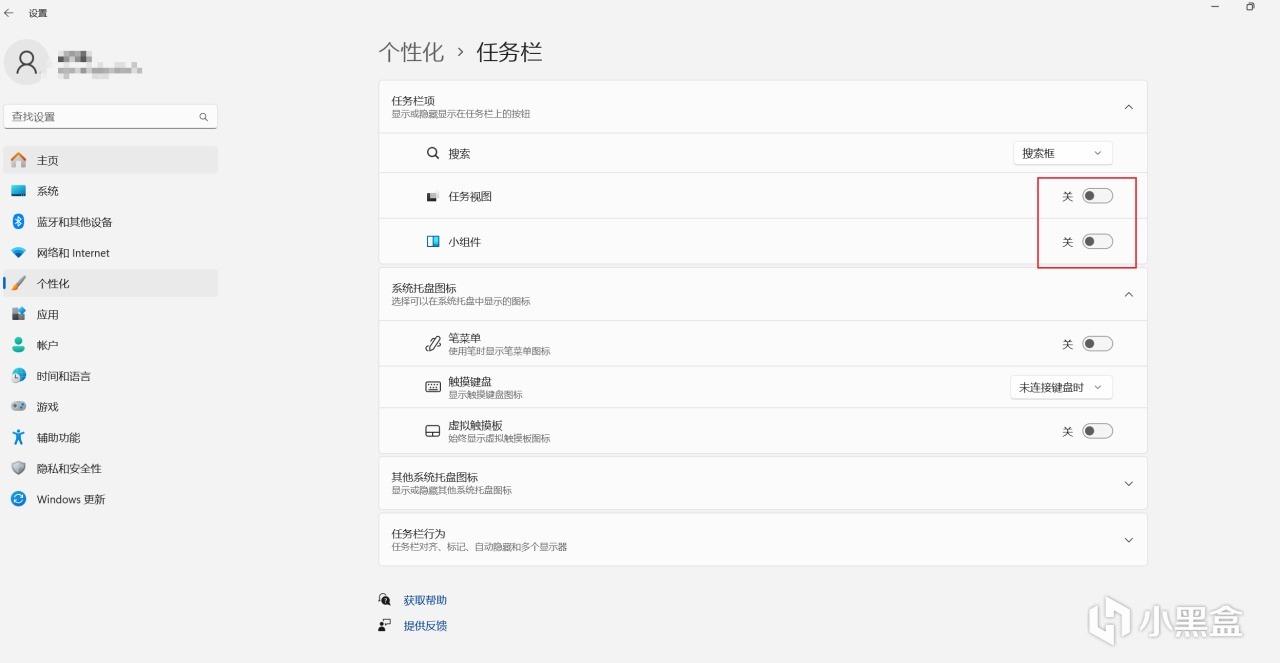 打開設置【快捷鍵Win+I】-個性化 –任務欄