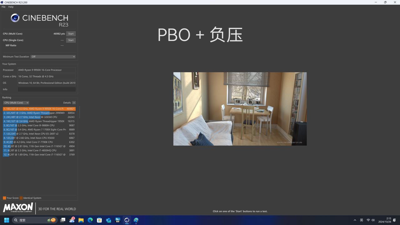 咱们就测最直观,受干扰影响最小的CineBench R23跑分好了