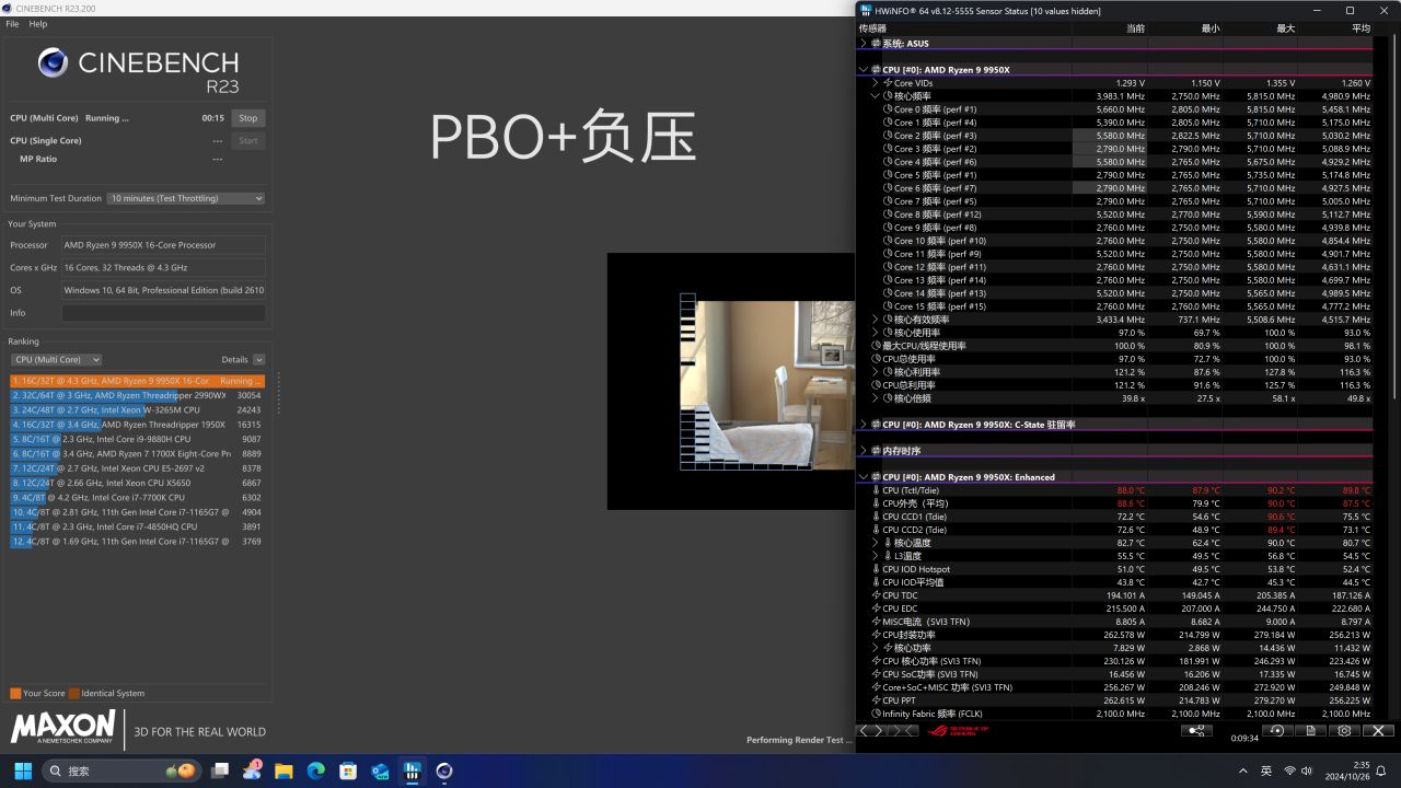 3⃣开启PBO enhancement,温度墙90℃,CCD0全核负压25~30,CCD1全核负压35~40