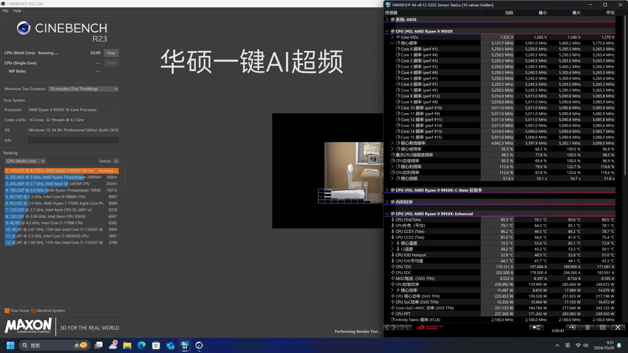 然而在285k首发的部分测试视频中,我发现各位up主的与友商进行对比的环节中,9950x的性能差异极大。