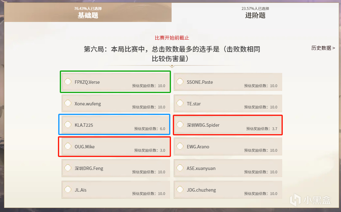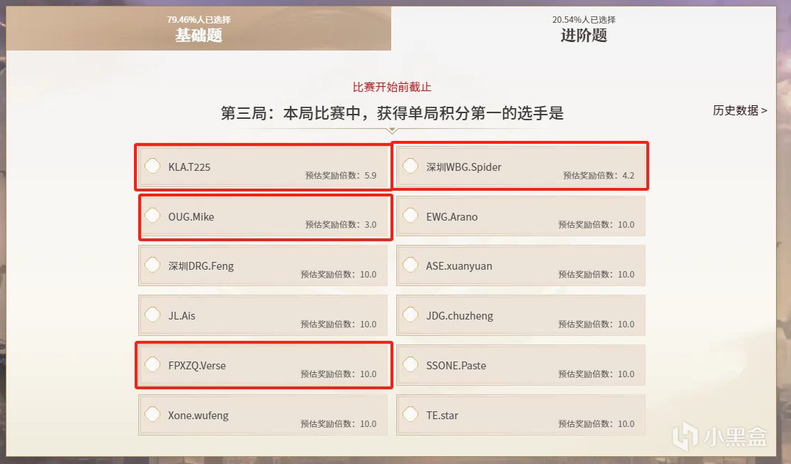 進階題要看選手們選擇英雄後再壓,像MIKE,小蜘蛛這種奪冠熱門選手,看他們選什麼,並且哈迪倍率被衝的太低了,不太值得選,建議投少量積分猜爆冷