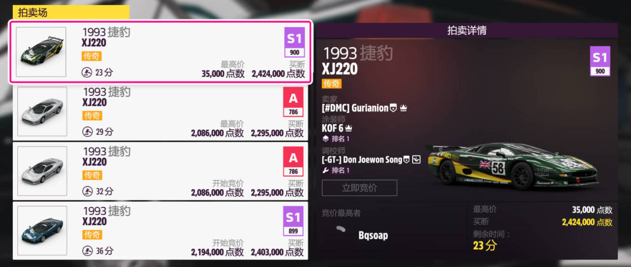推薦車輛:1993款捷豹 XJ220(錦標賽一獎勵車)