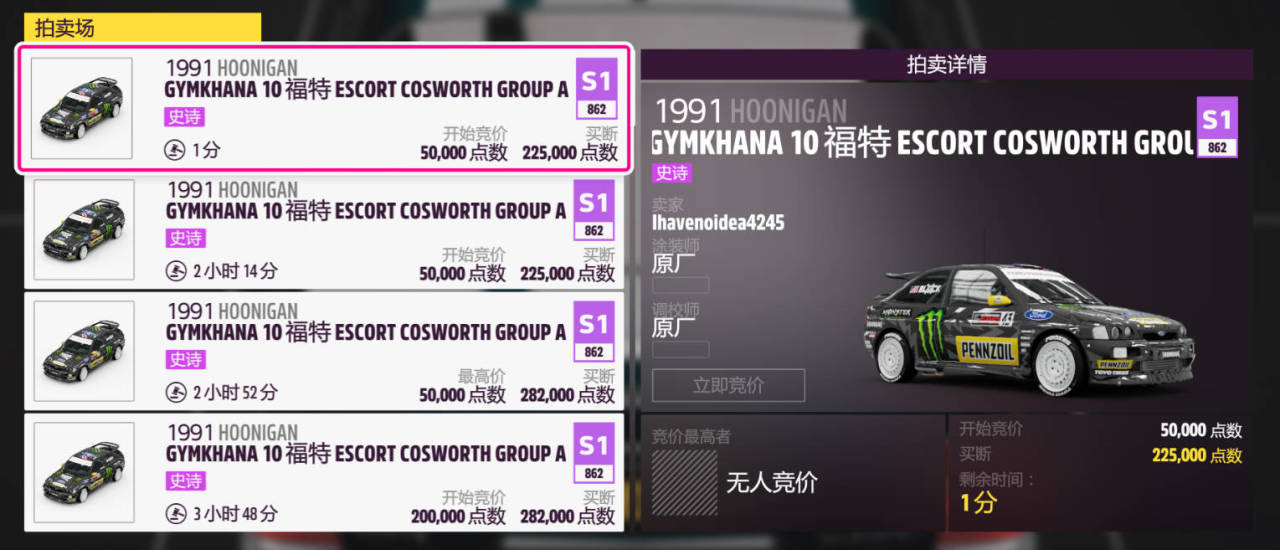 1、1991款HOONIGAN GYMKHANA 10 福特 ESCORT COSWORTH GROUP A(錦標賽二獎勵車,多利用倒轉)