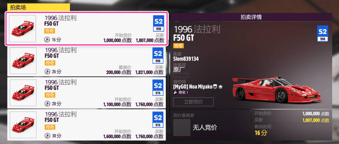 獎勵車輛爲:1996款法拉利 F50 GT