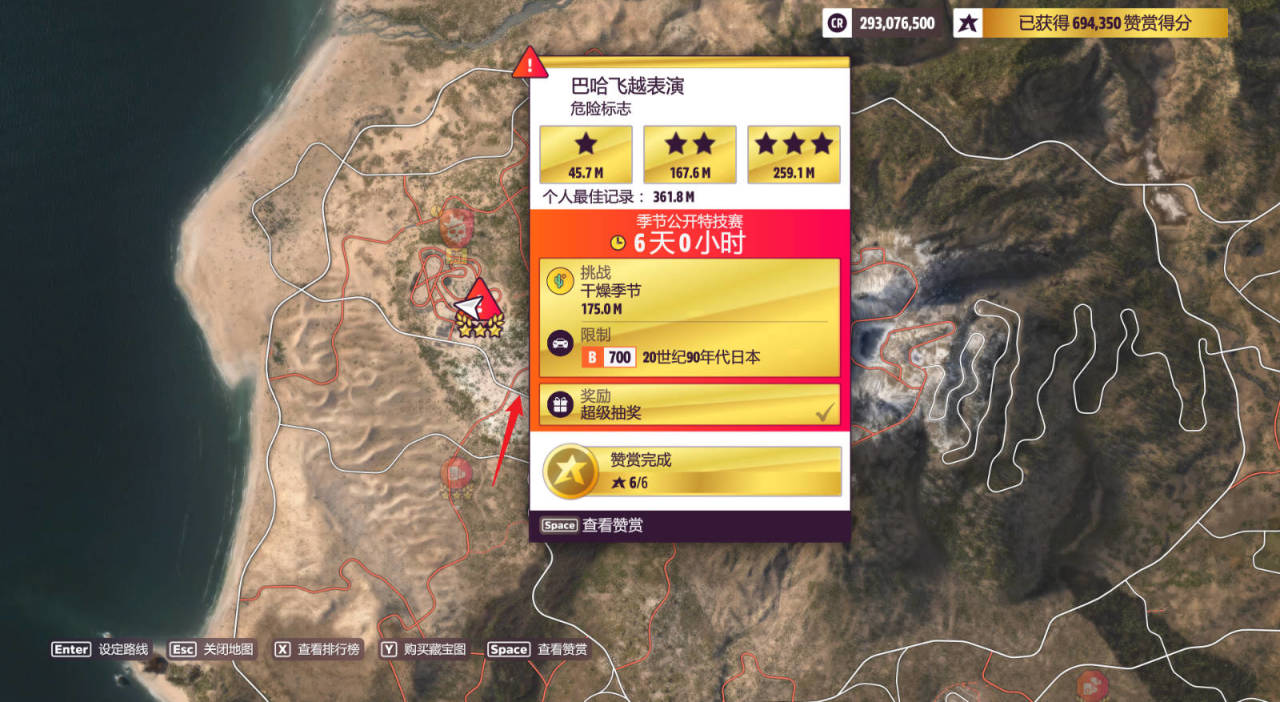 危險標誌:巴哈飛躍表演,完成獎勵爲超級抽獎。(箭頭所標的這條路拉遠點起步)