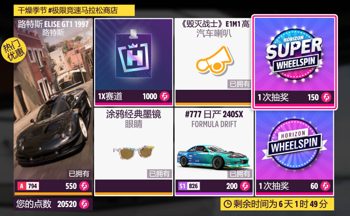 本週更新車輛爲1997款路特斯 ELISE GT1和1993款FORMULA DRIFT #777 日產 240SX。兩輛車都是車展車,不建議兌換!