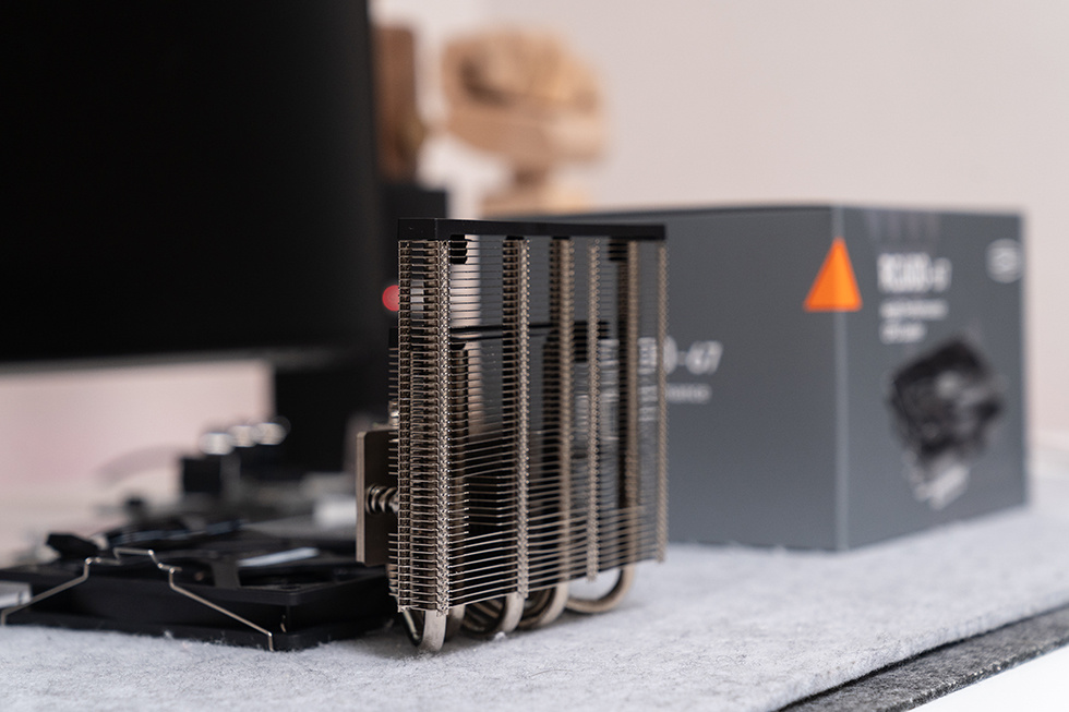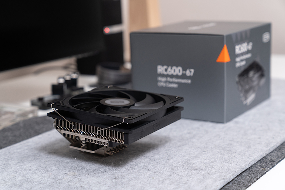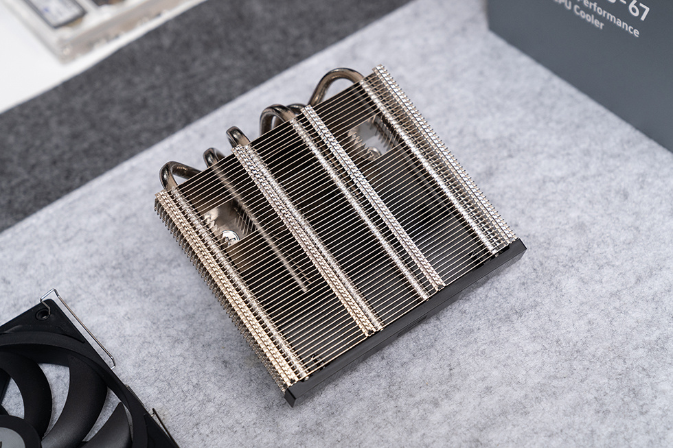 降龍 RC600-67 配備 4+2 雙層設計 6mm 鍍鎳熱管和微凸銅底,採用加厚型被動散熱模塊,塔體爲全迴流焊,而 47 片 0.4mm 間隙純鋁散熱鰭片羣使用了扣 Fin 搭配折 Fin 工藝。