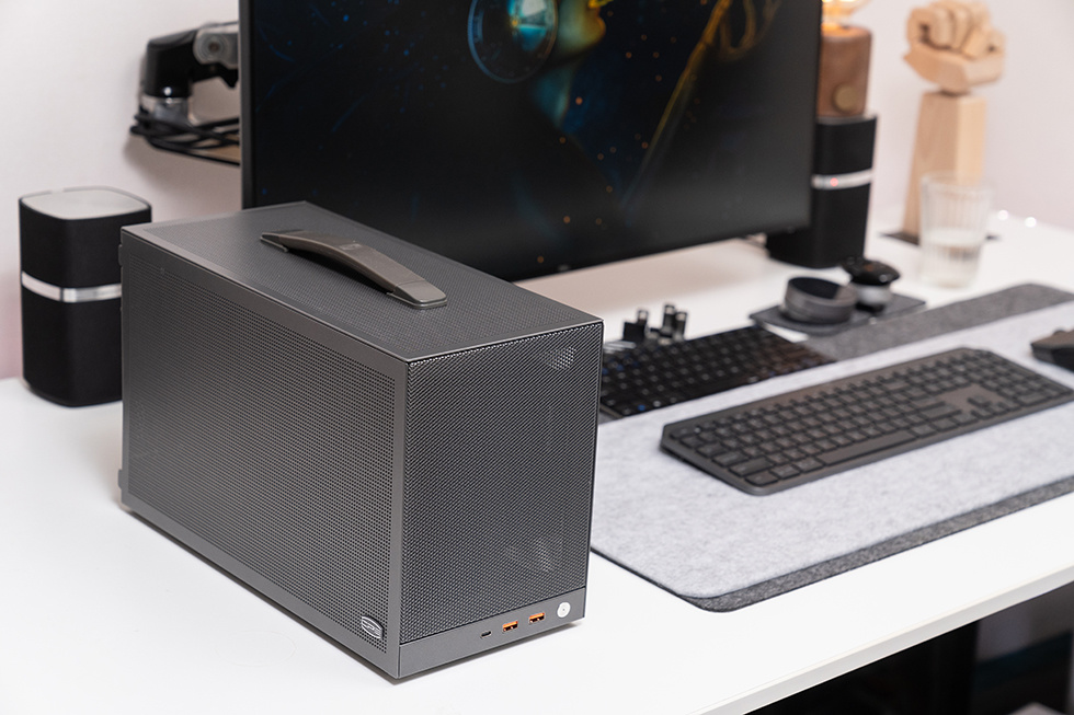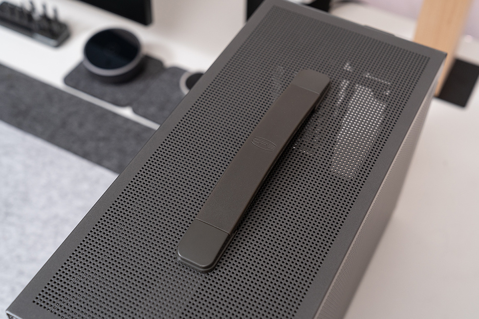 在整體外觀上,超頻三依舊保持了方正簡潔的設計風格,熟悉的頂部提手設計,本次裝機選用無光方案,主打一個低調簡約實用。