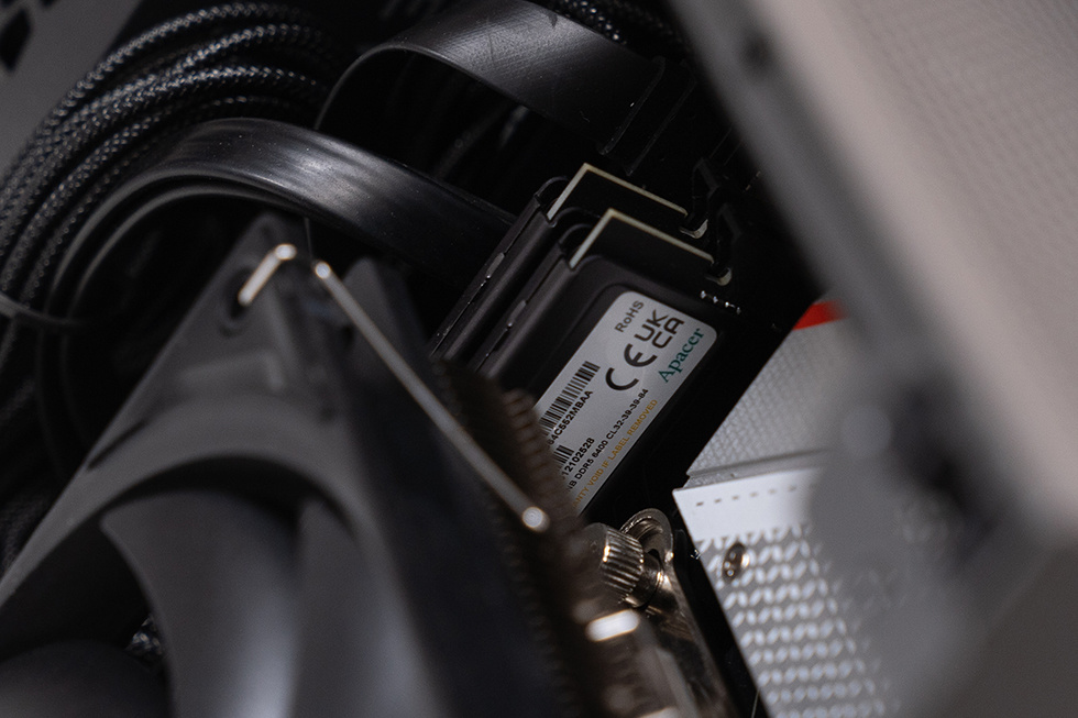 搭配使用了宇瞻 暗黑馬甲 DDR5,內存顆粒爲鎂光顆粒,XMP 頻率則爲 6400,時序 32-38-38-96,電壓1.2V,搭載 PMIC 電源管理晶片及 ONE-DIE ECC 內存糾錯機制,支援 Intel XMP3.0 輕鬆一鍵超頻。