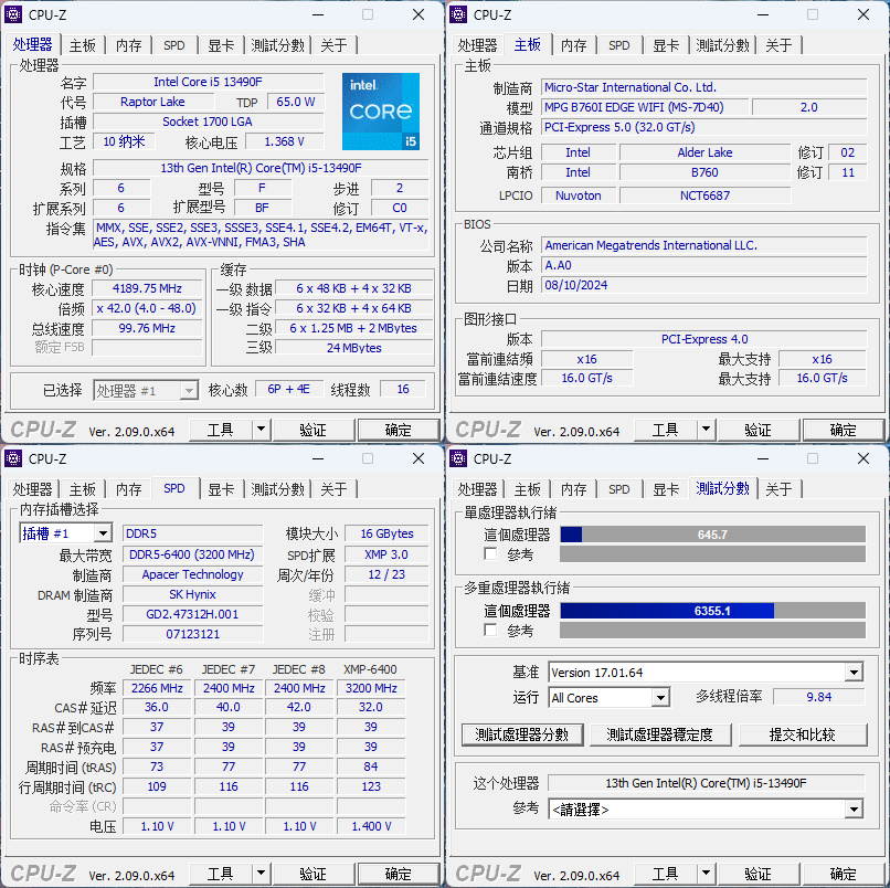 主板選用了微星 MPG B760I EDGE WIFI ,搭配 i5 13490這樣的低功耗處理器很適合ITX主機。