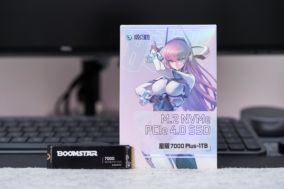 存儲方面選用了影馳 星耀7000Plus 1TB,採用熟悉的星耀娘彩盒塗裝,右下角標明瞭產品的相關信息,支持PCIe 4.0,可向下兼容PCIe 3.0,官方稱其順序讀取可達7000 MB/s,順序寫入也能達到6000 MB/s。