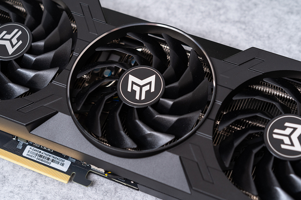 影馳 GeForce RTX 4070 金屬大師B OC顯卡採用新一代寒光星散熱系統,配置了3個規格爲92mm超大靜霜風扇,每個風扇帶有11片三折式扇葉,均支持智能啓停,GPU空閒時自動停轉以減少噪音和功耗。GPU/顯存/供電一體式覆蓋均熱板+鍍鎳複合熱管+大面積散熱鰭片,配置4*Φ6mm鍍鎳複合熱管,依託迴流焊接工藝大幅提升散熱效率。