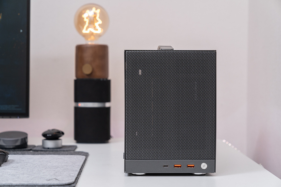 機箱正面也升級了mesh面板,整體從上代的三面mesh設計升級到了四面mesh設計,進一步增加了通風散熱效能。正面底部配備了1個type和2個usb接口,足夠日常使用。