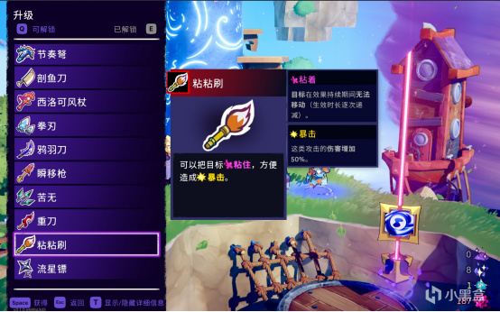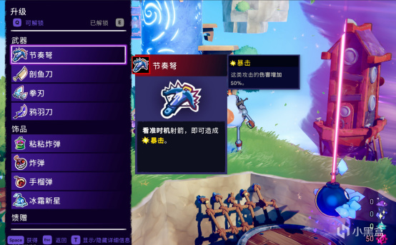 而解鎖的“最遠端暴擊”的流星鏢,站遠了基本就是空擲,完全打不到人。一開始我以爲是我沒掌握機制的問題,但節奏弓可以邊閃邊A,但流星鏢則完全不行。可以說是十分影響體驗了。
