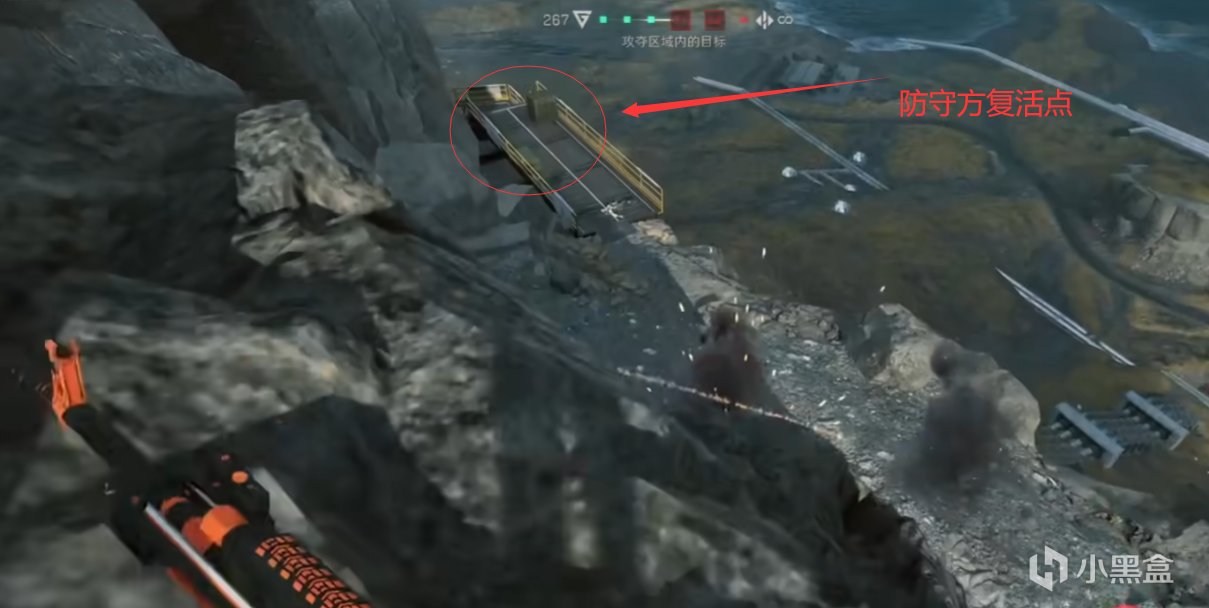 C点进攻方还有一个小技巧就是,拿下C2。对面按C1复活。复活点都是下图这个位置。直接拿载具或者机枪架住。C点必拿下。当然这个前提是,对面没有人在点里放大信标。
