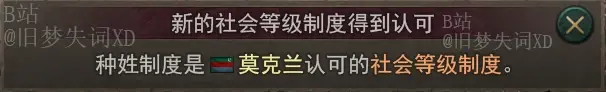 如果玩家遊玩東印度公司,並且印度起義事件導致英屬印度成立,且實施種姓制度或種姓制度法典化尚未成爲你的法律之一,那麼將直接使種姓制度法典化生效。