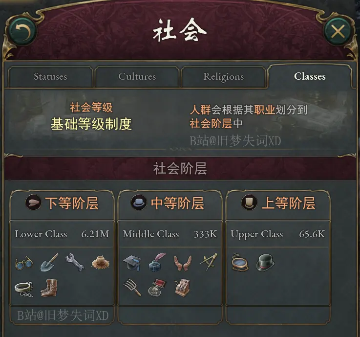 在老版本中,人羣被生硬地劃分爲上、中、下等三個階層。這套機制很明顯無法適配種姓制度。由於在全世界範圍內很多職業與階層綁定,所以我們引入社會等級制度。在新版本中,世界不同地區的職業社會排名不盡相同,這樣就能更好地模擬英屬印度種姓制度。